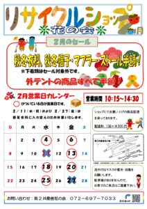 2月リサイクルショップ花の会(南平台)からのお知らせ