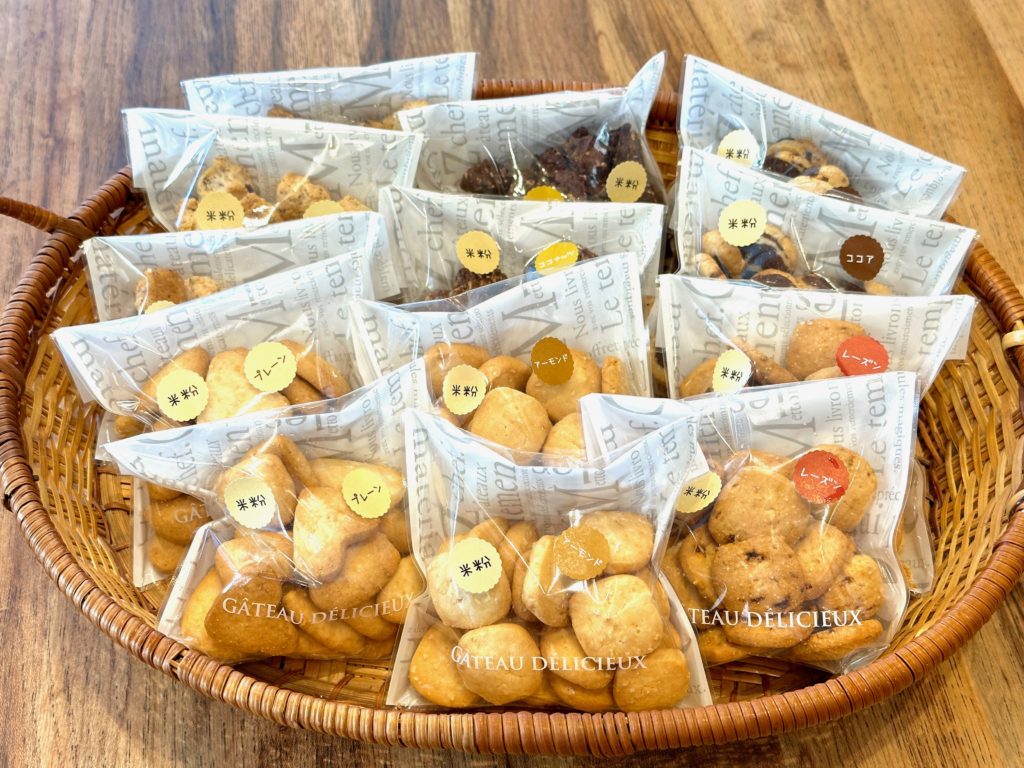 クッキーにおいては小麦粉の代わりに米粉(ミズホチカラ)、香ばしさを出すためにナッツ粉を使い、コクを出すために豆乳入りのホイップをバターの代わりに使用しています。