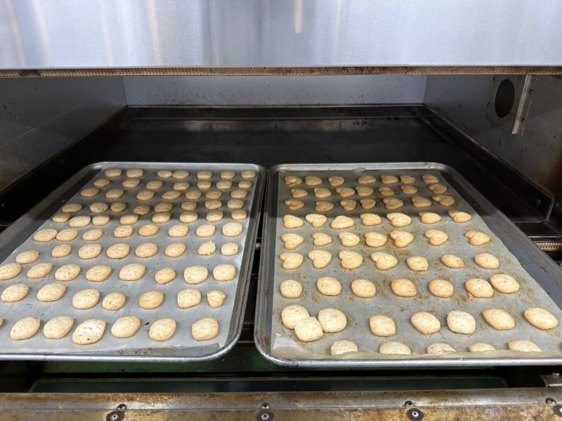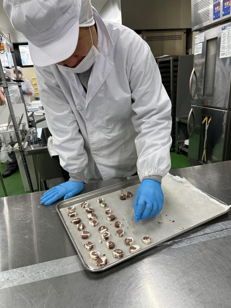 パン・菓子の作業には様々な工程があります。クッキーを並べる、焼いたクッキーを冷ます、袋に入れ計量するなど。